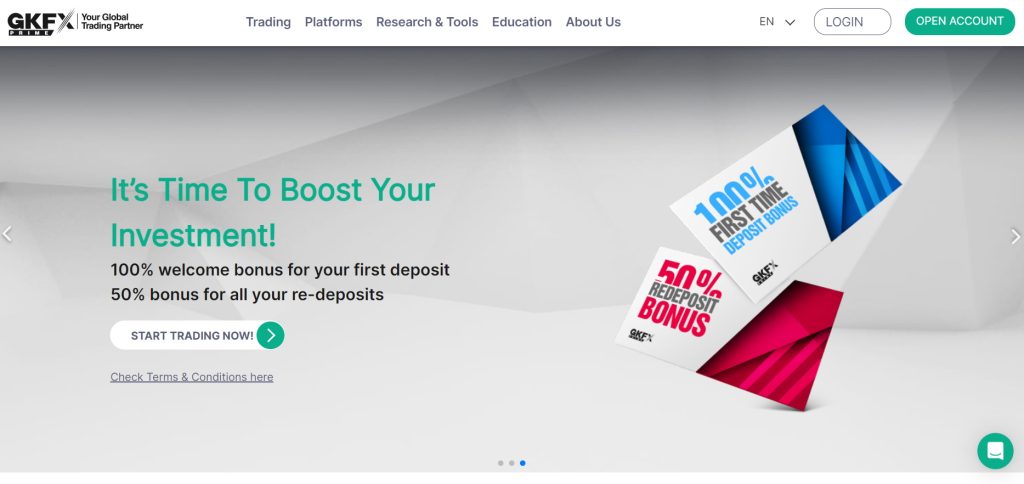 GKFX Prime is a strong brand in Forex and CFD trading industry. The broker offers more than 400 trading instruments with competitive prices and accurate execution including Forex, Stocks (Shares), Indices, Commodities, and Cryptos.